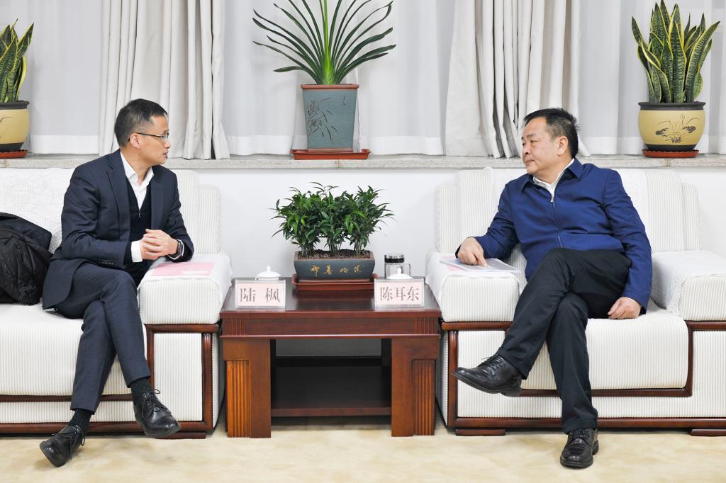 11月25日,万家寨水务控股集团党委书记、董事长陈耳东,党委委员、副总经理李俊刚会见中国国际金融股份有限公司债券大区董事、总经理陆枫一行,万家寨水务控股集团相关部室、中心,中国国际金融股份有限公司相关人员参加。