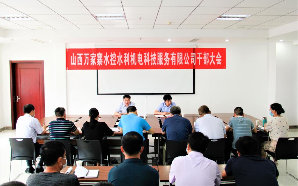 8月3日,万家寨水务控股集团党委委员、副总经理蔡开东主持召开山西万家寨水控水利机电科技服务有限公司干部大会并作讲话,水控集团党委组织部负责同志宣布水控集团党委关于机电科技公司领导班子的任职决定,机电科技公司党总支书记、执行董事、副总经理(主持工作)闫向东代表机电科技公司领导班子表态发言。