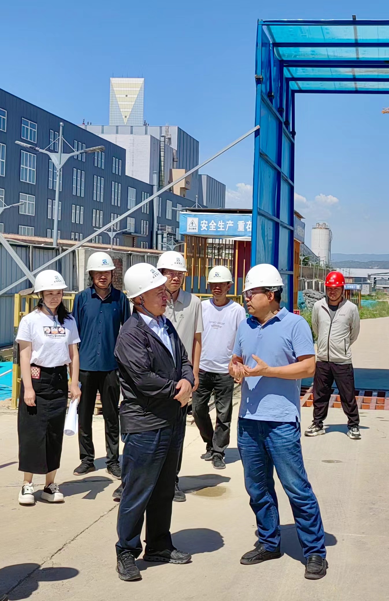 冯志君在施工现场,仔细查看了各个施工环节,听取了装备集团负责人关于经营现状、市场开发、项目进展、施工安全等情况的汇报。