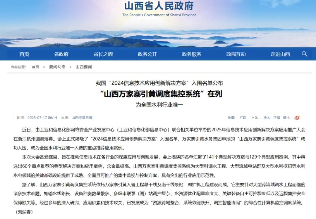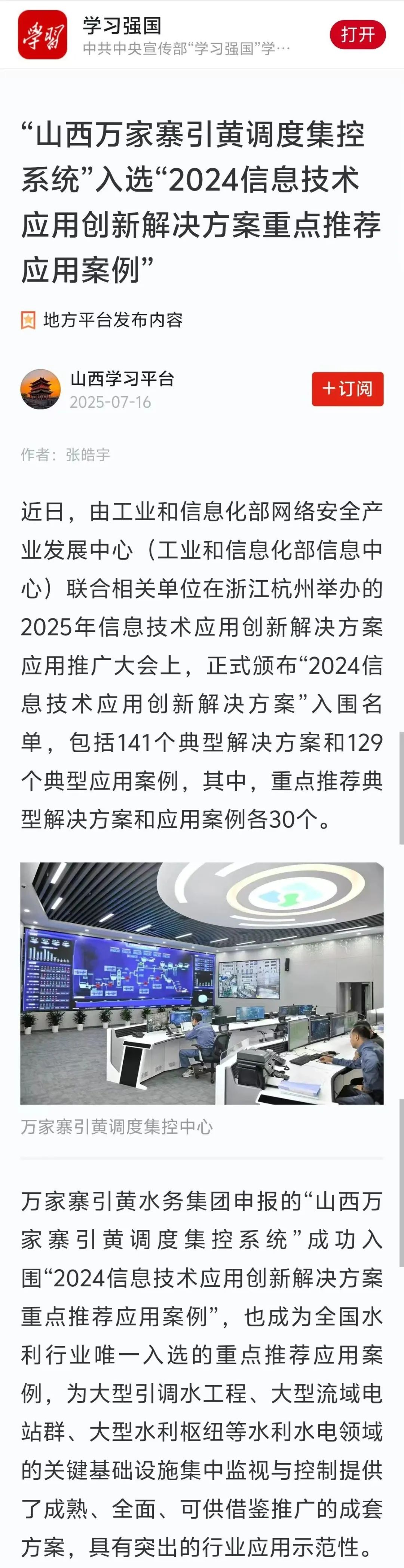 为加快信息技术应用创新,实现核心技术自主可控,“山西万家寨引黄调度集控系统”的重点推荐引发省内主流媒体广泛关注……