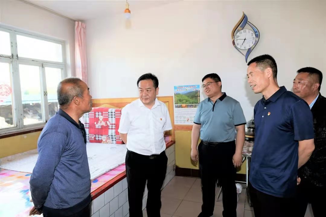 在偏关县陈家营村,陈耳东、范世平一行与偏关县委副书记、副县长高跃龙一起走进驻村工作队员的住所,详细了解同志们入村以来的工作生活情况;在与县乡村和全体工作队员召开的座谈会上,听取了工作队近期工作情况的汇报,听取了地方同志关于县乡情况及乡村振兴工作思路的介绍。