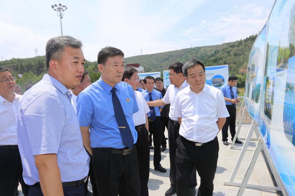 7月7日,省人民检察院党组书记、检察长杨景海在汾河水库就水库生态?;で榭鼋醒膊榈餮?。省水利厅党组书记、厅长常建忠,万家寨水控集团党委书记、董事长陈耳东等一同调研。