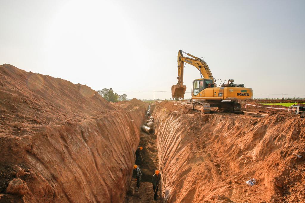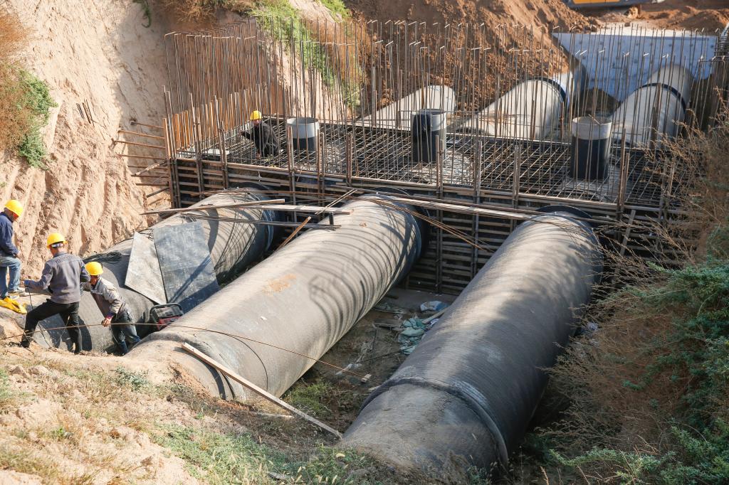 ▲施工13标全程34.8公里,目前已完成24.7公里。图为涑水压力泵站二号压力管线排气阀井施工
