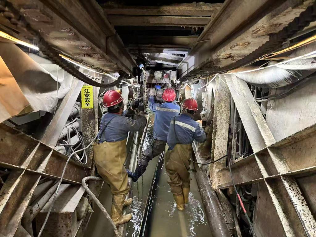 在东干线攻坚中,公司党委通过多次组织专家论证进行科学决策,及时新增地表预注9号钻场试验段,根据TBM掘进施工进度,优化调整地表钻孔预灌浆控制水平段长度,由最初制定的水平控制段200米调整为560米,通过采用地表钻孔预灌浆措施,为TBM连续、快速掘进创造了有利条件。东干线攻坚团队通过实践总结,科学构建起“掘进未动,预报先行,研判协同,治理超前”的管理体系。自TBM恢复掘进以来,采用地震波法和瞬变电磁法完成对掌子面前方地质条件探测6次,参建四方现场召开技术讨论会及超前堵水分析研判会十余次,通过集思广益、排查风险,制定出科学的应对方案并严格执行,有效破解制约工程进度的难点,保证了TBM正常掘进。同时,团队多管齐下保障TBM高效掘进:通过日检、周检对设备进行全面检修,对主轴承、主驱动等核心部件实施重点监控和预警,为TBM持续发力提供可靠设备保障;通过完善洞内排水系统、更换通风管路、优化除尘系统等举措,为TBM高效掘进创造优良的施工条件;通过精简采购流程、科学储备备品备件、动态监控消耗品库存、定期保养运输设备及设立专职轨道巡检班组等措施,为TBM高效掘进提供物资保障和运输保障。10月18日,TBM3标(续)提前74天完成年度掘进任务。截至目前,创造掘进班组最高进尺9米、日最高进尺15米、月最高进尺260米佳绩。