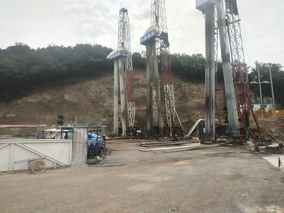 ▲地面定向钻孔预灌浆施工