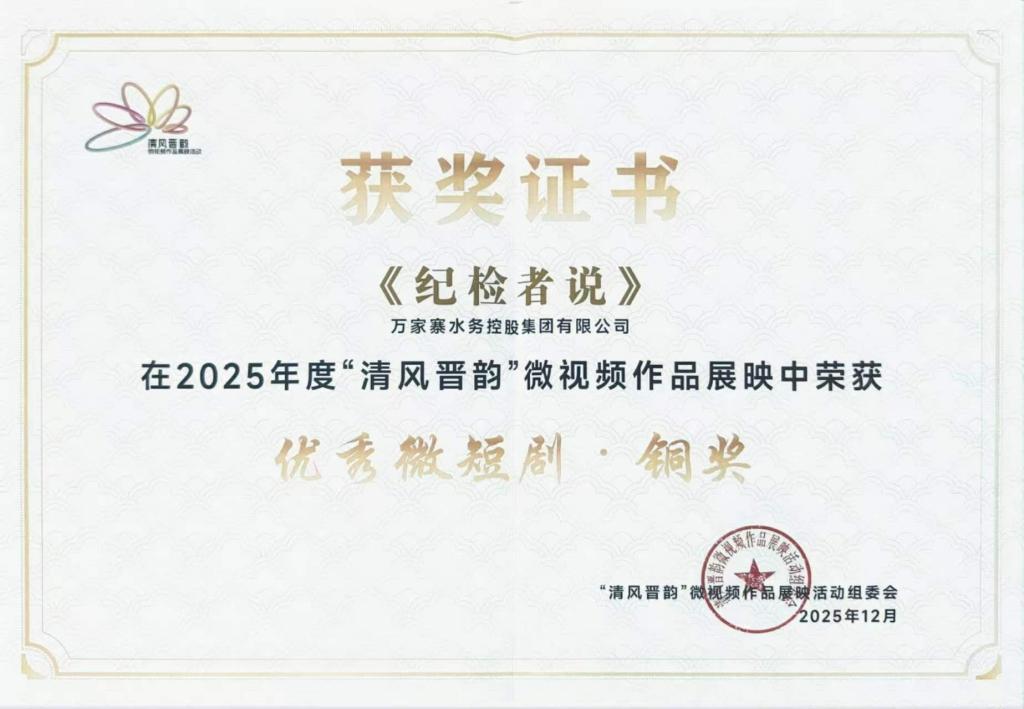 1月26日,由中国纪检监察杂志社指导、山西省纪委监委宣传部主办的2025年度“清风晋韵”微视频作品展映活动在太原举办,共评选出金奖5部、银奖10部、铜奖15部,中部引黄水务集团报送的微短剧《纪检者说》荣获优秀微短剧铜奖。
