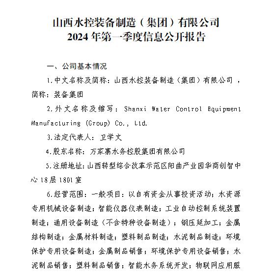山西汾河灌溉管理有限公司2024年第一季度财务等重...