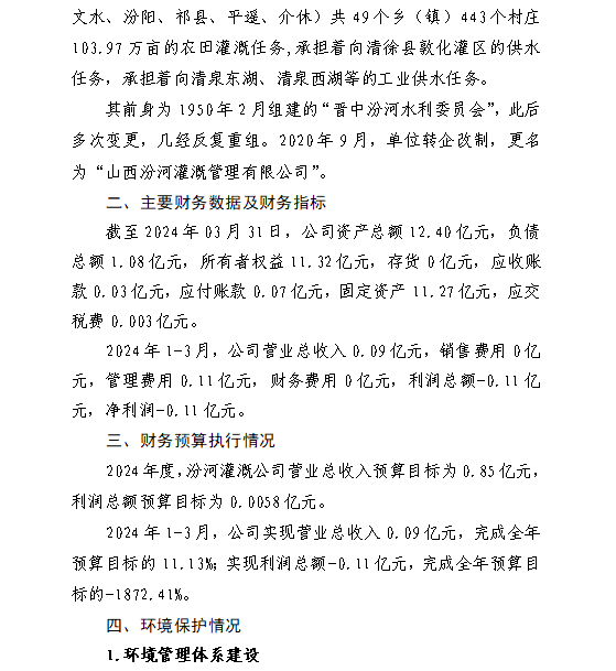 山西万家寨引黄水务集团有限公司2024年第一季度信...