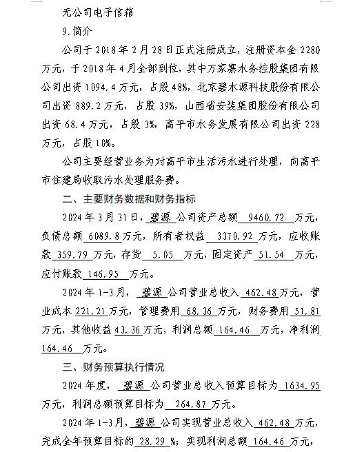 万家寨水务控股集团有限公司2024年一季度财务等重...
