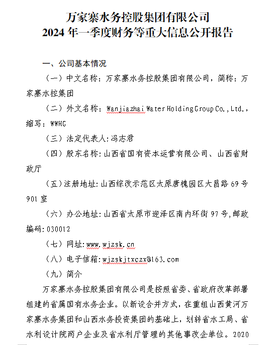 山西水资源研究所有限公司2024年第一季度信息公开...