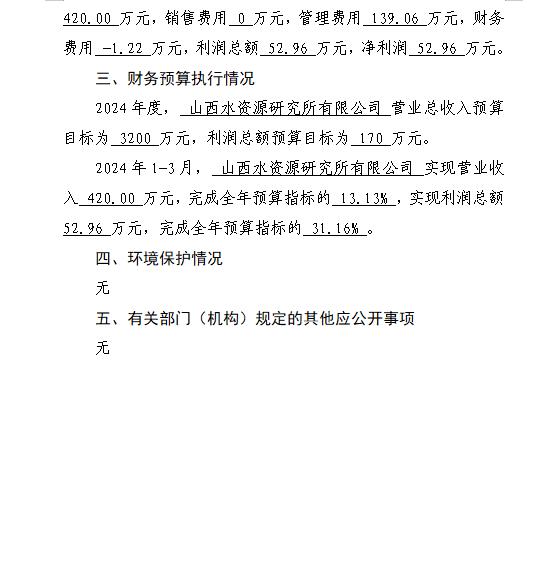 山西水投汾景水务有限公司2024年第一季度信息公开...