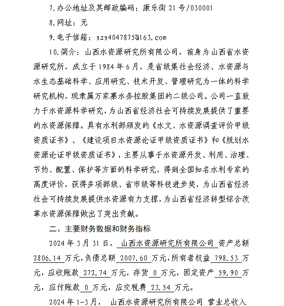 万家寨水务控股集团有限公司2024年一季度财务等重...