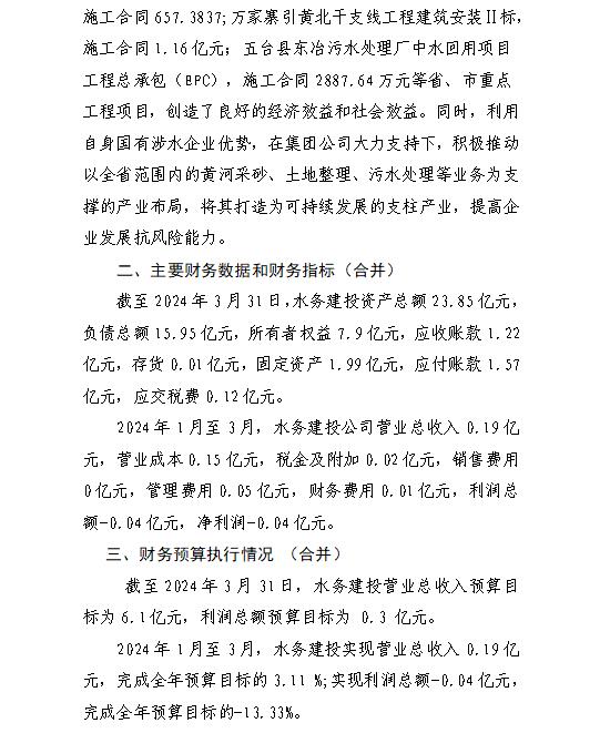 山西汾河灌溉管理有限公司2023年度财务等重大信息...