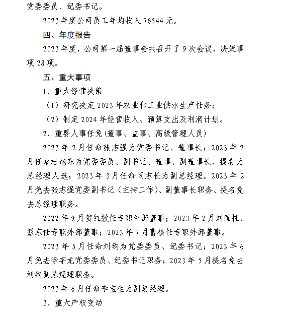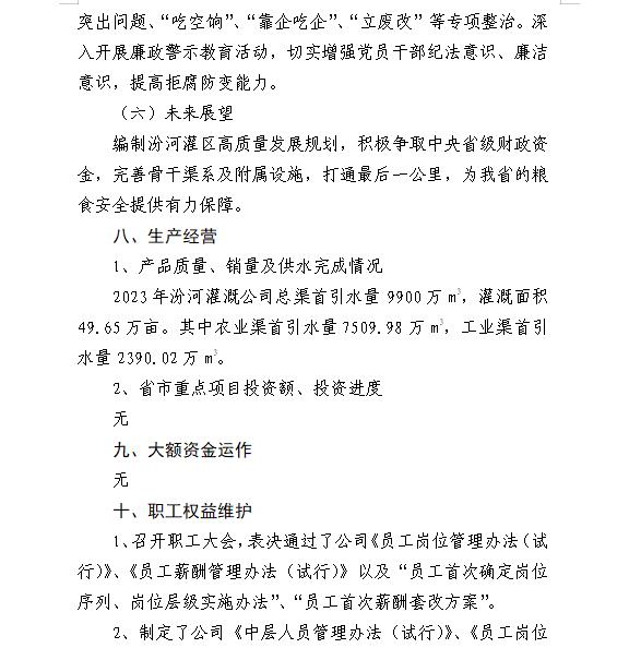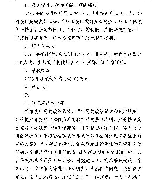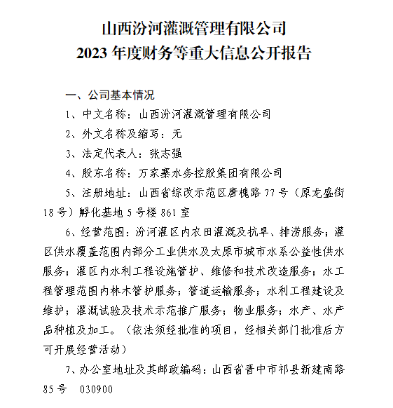 山西中部引黄水务集团有限公司2024年第一季度信息...