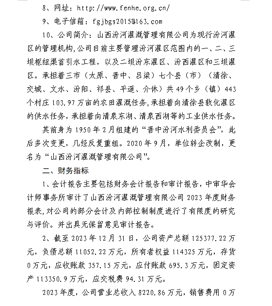山西汾河灌溉管理有限公司