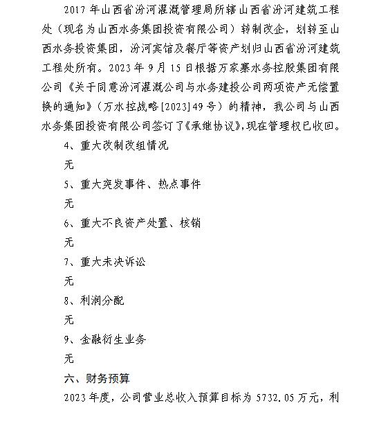 山西水务集团建设投资有限公司2024年第一季度信息...