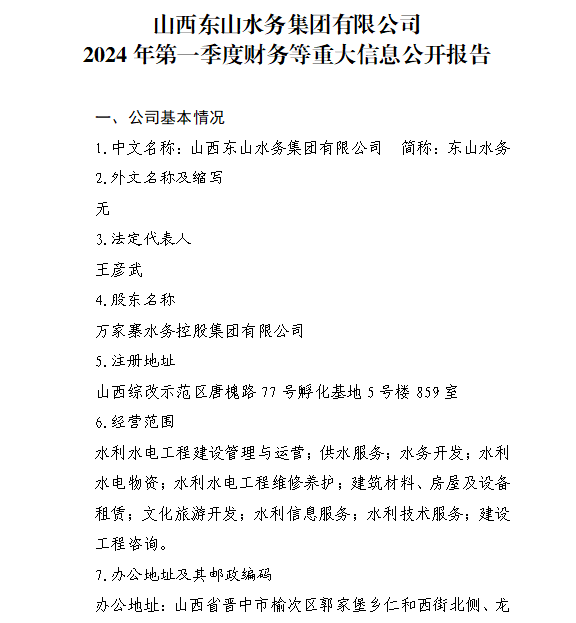 山西汾河流域管理有限公司2024年第一季度财务等重...