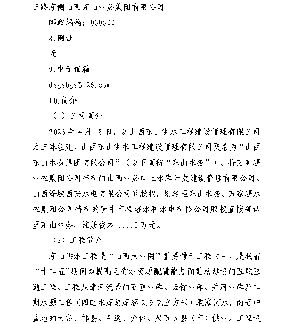 山西东山水务集团有限公司