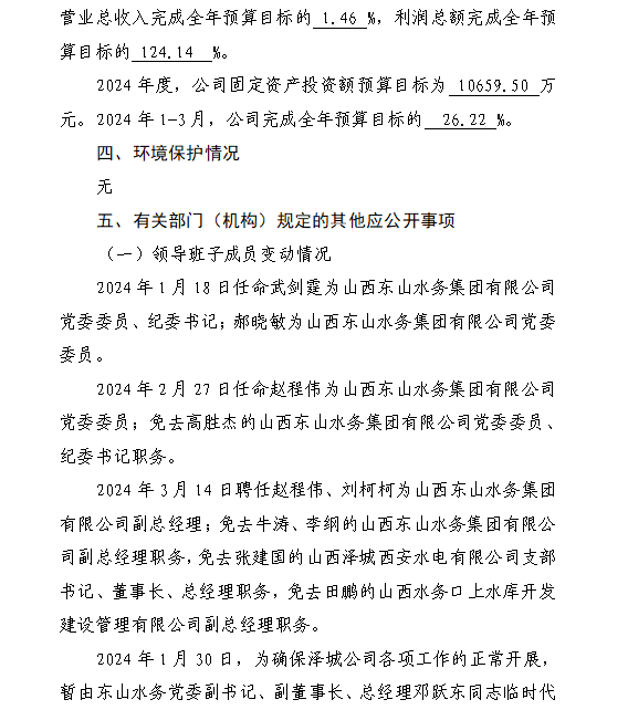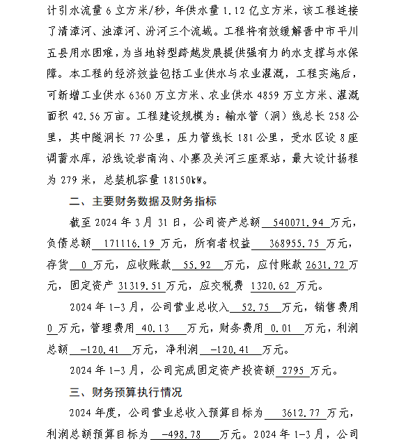 山西中部引黄水务集团有限公司2024年第一季度信息...