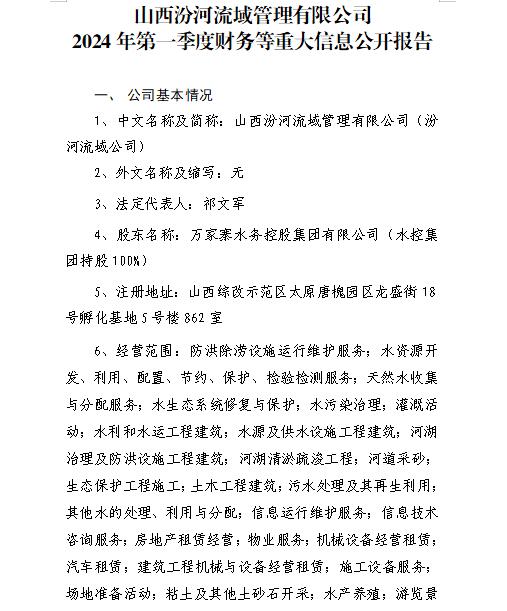 2024年第一季度财务等重大信息公开报告