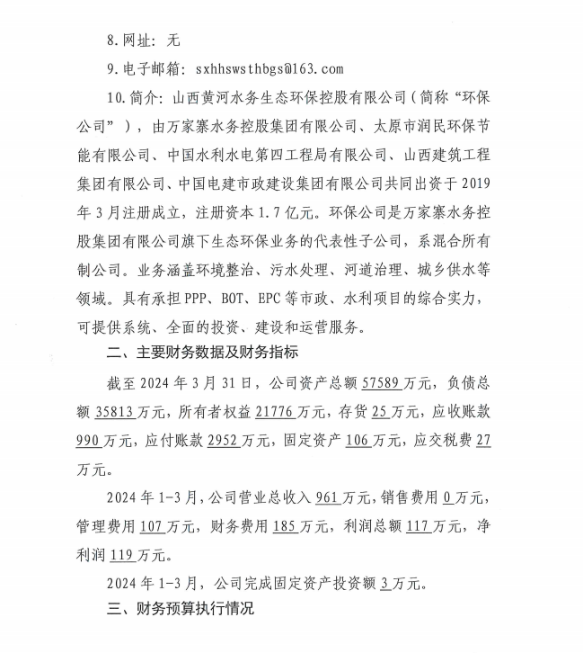 山西省水利建筑工程局集团有限公司2024年一季度信...