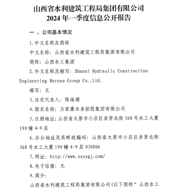 山西沁河水务集团有限公司2024年第一季度信息公开...