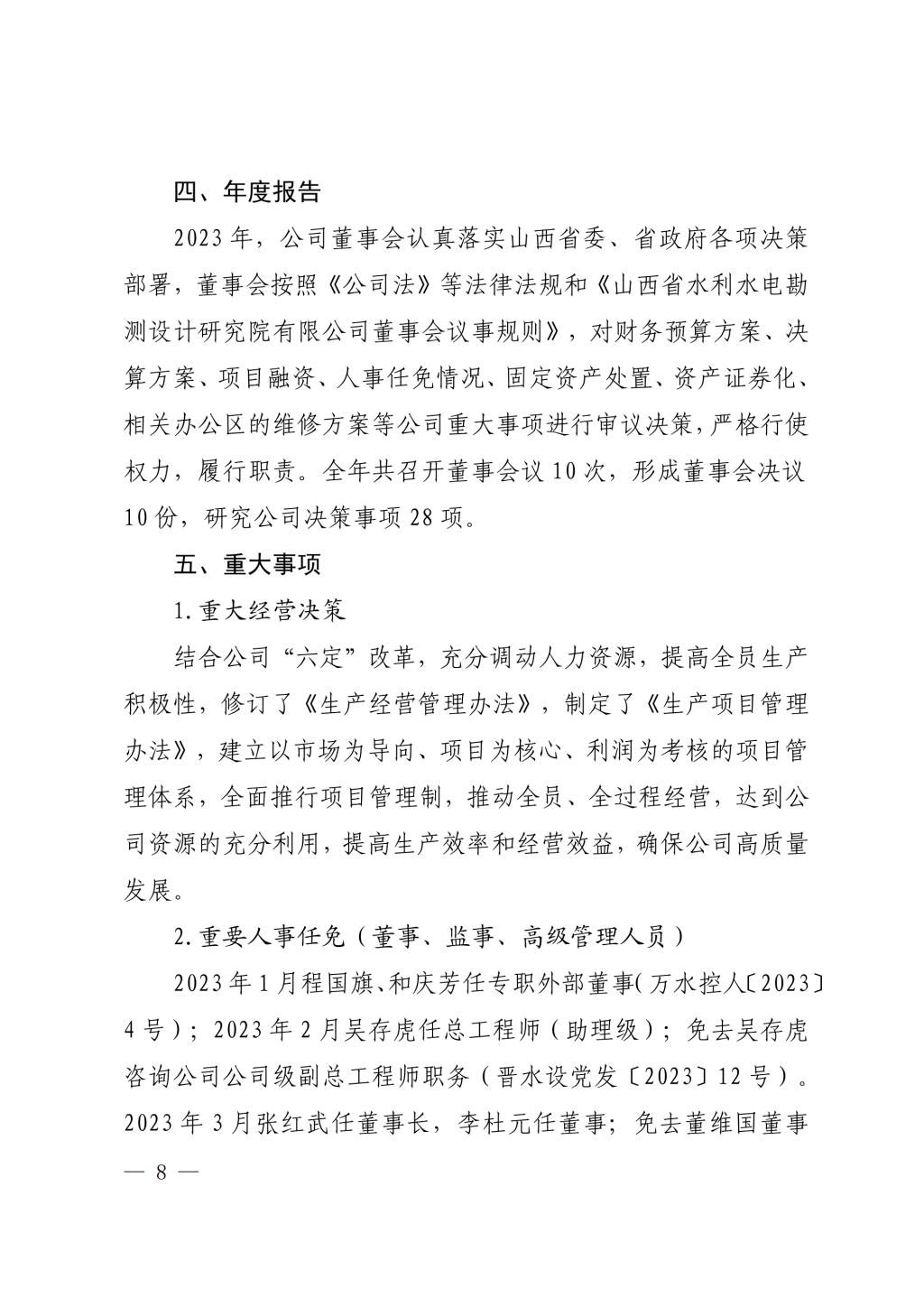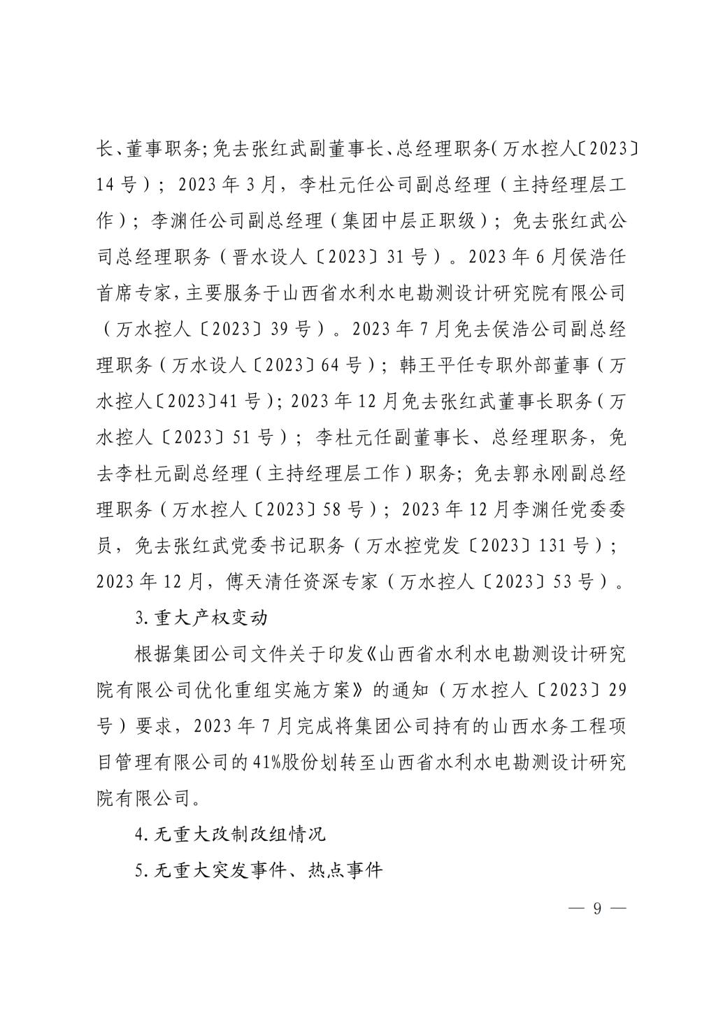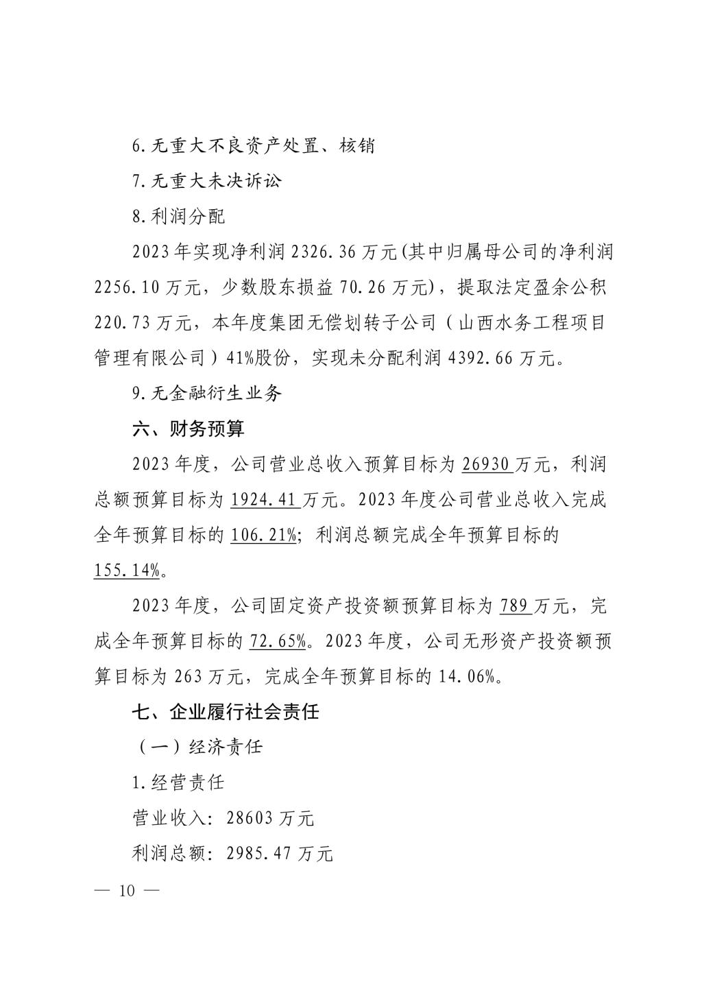 山西中部引黄水务集团有限公司2023年度重大信息公...