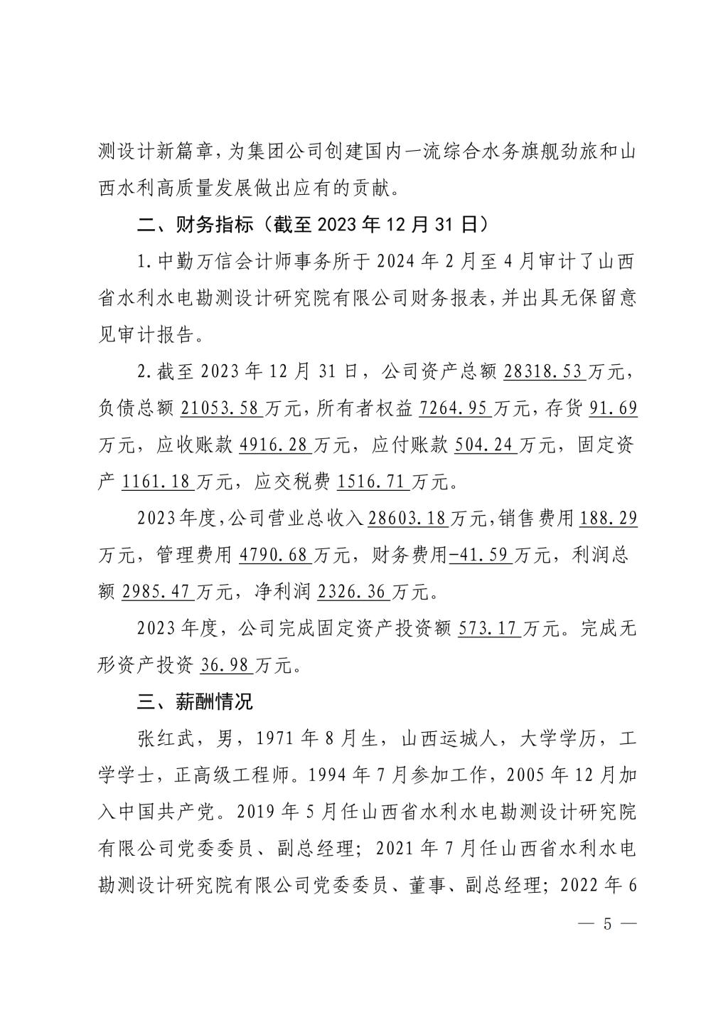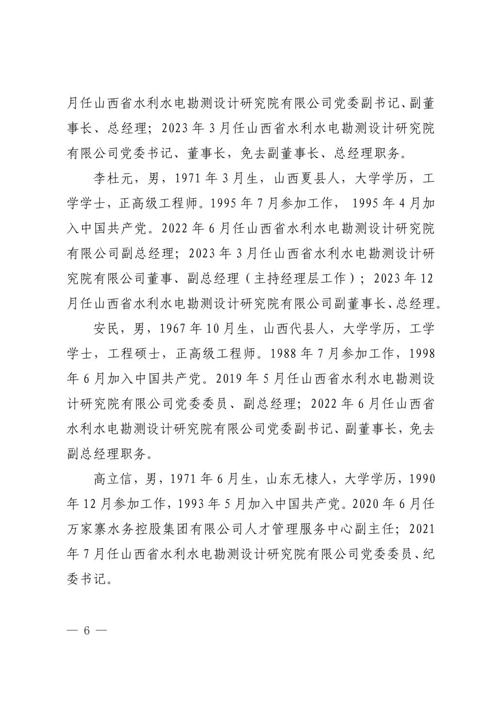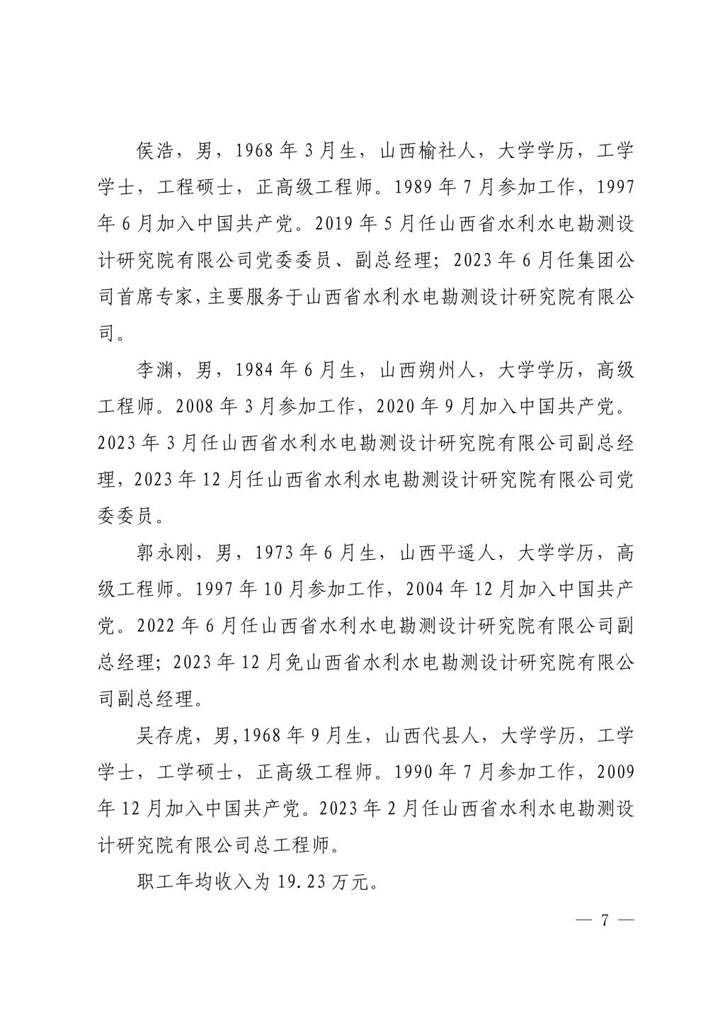 山西中部引黄水务集团有限公司2023年度重大信息公...