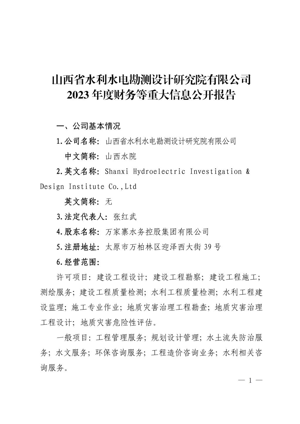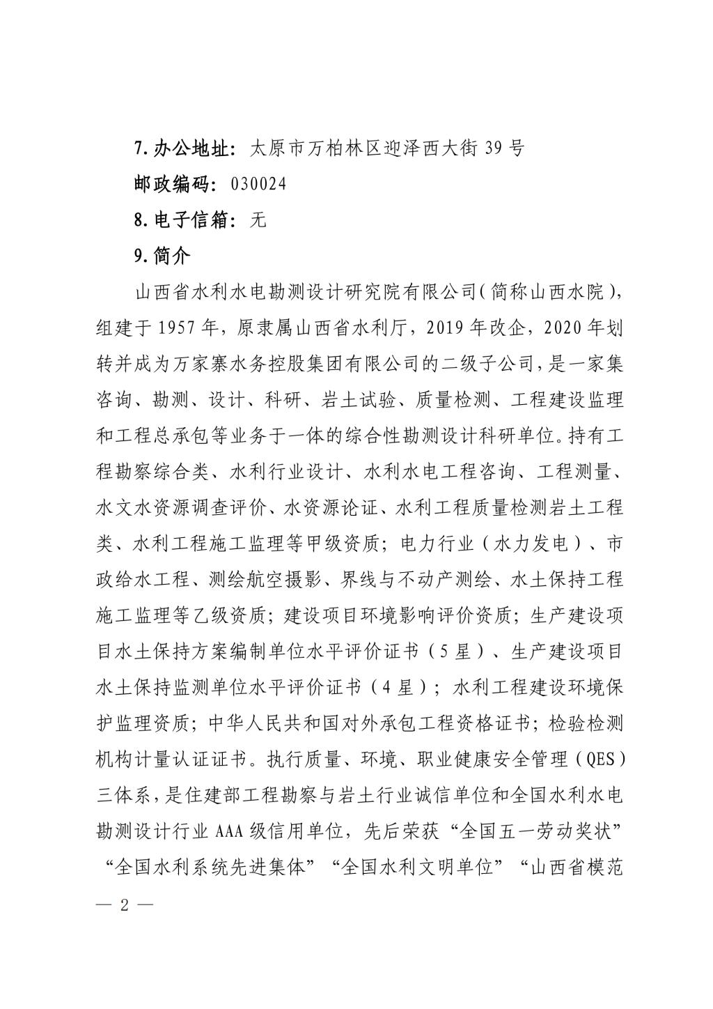 山西省水利水电勘测设计研究院有限公司