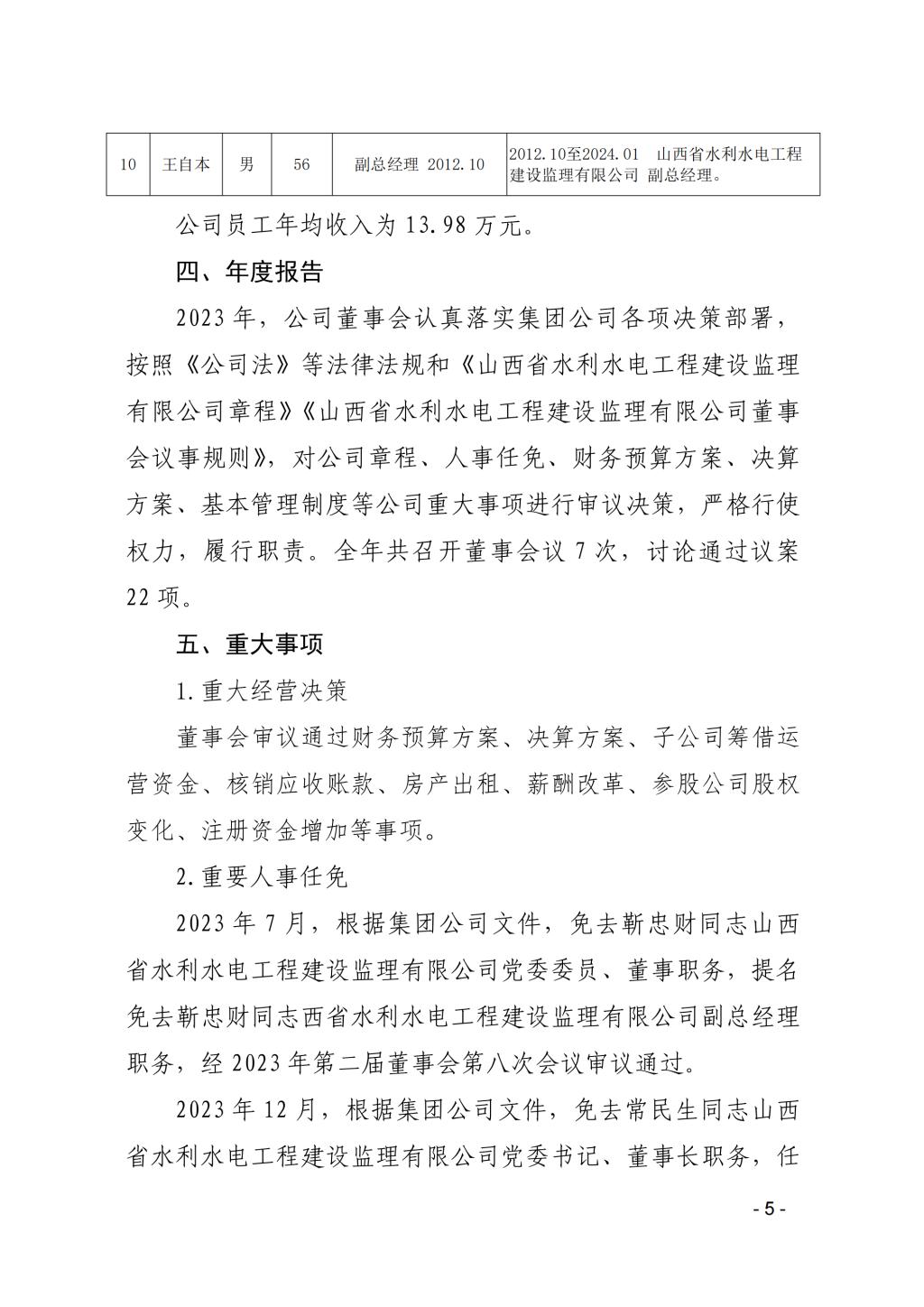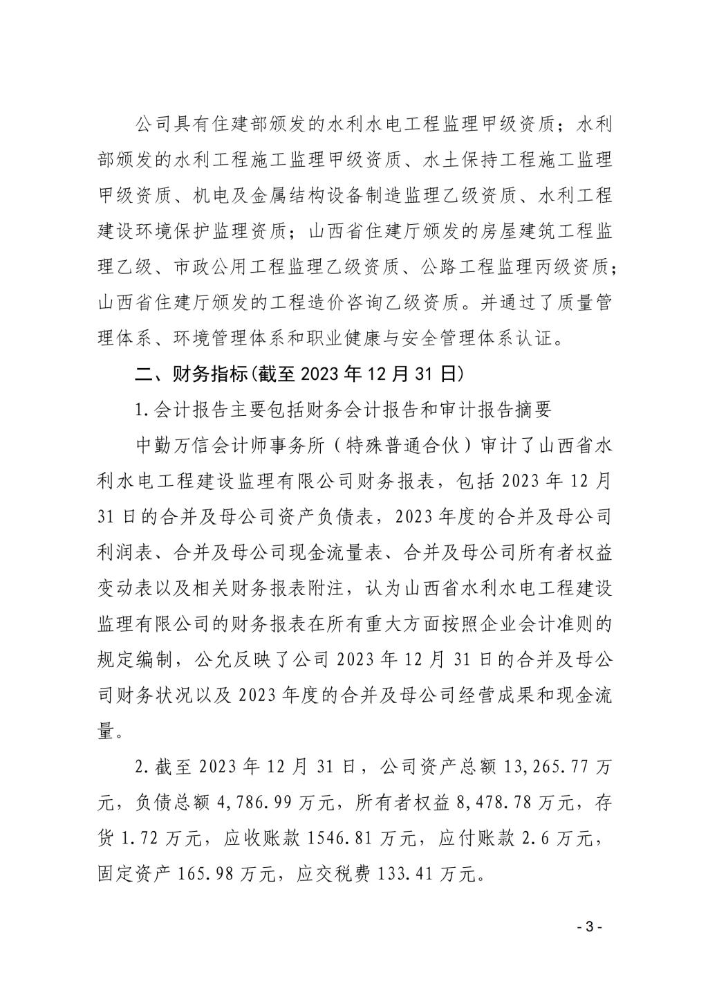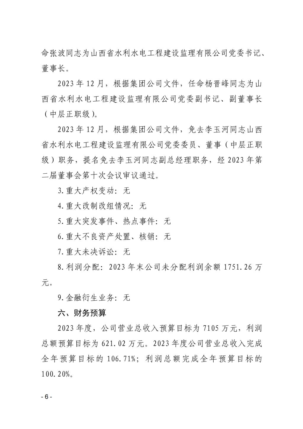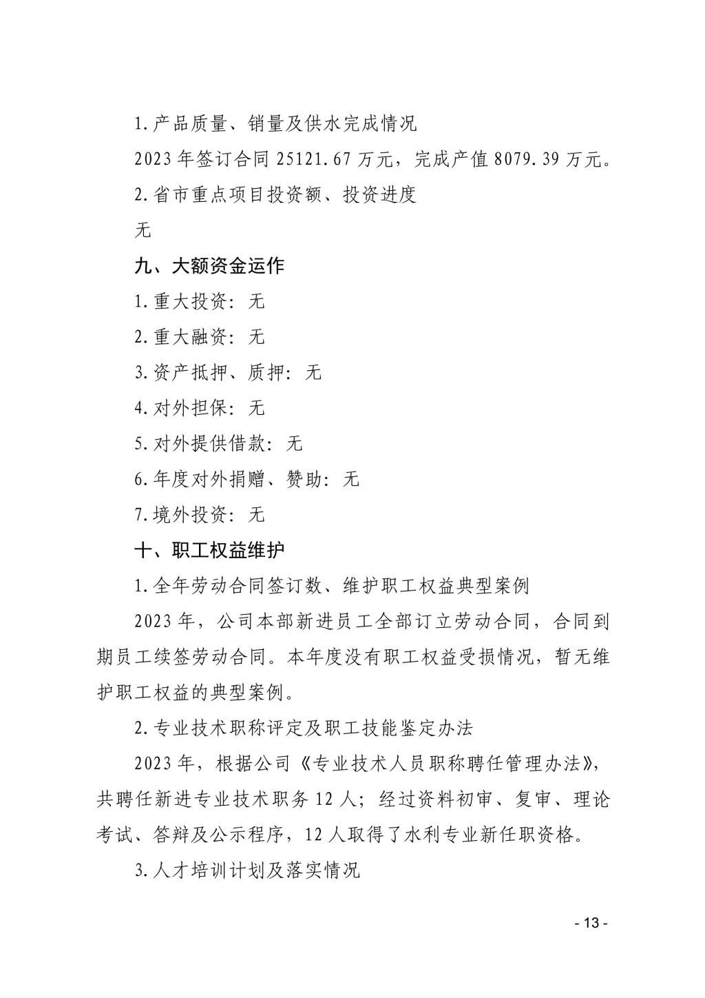 山西中部引黄水务集团有限公司2023年度重大信息公...