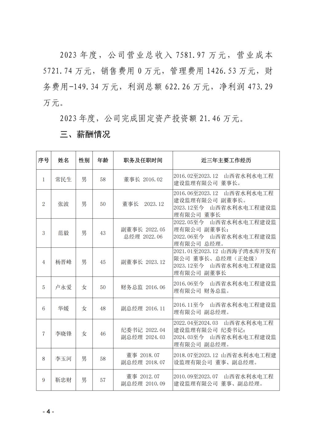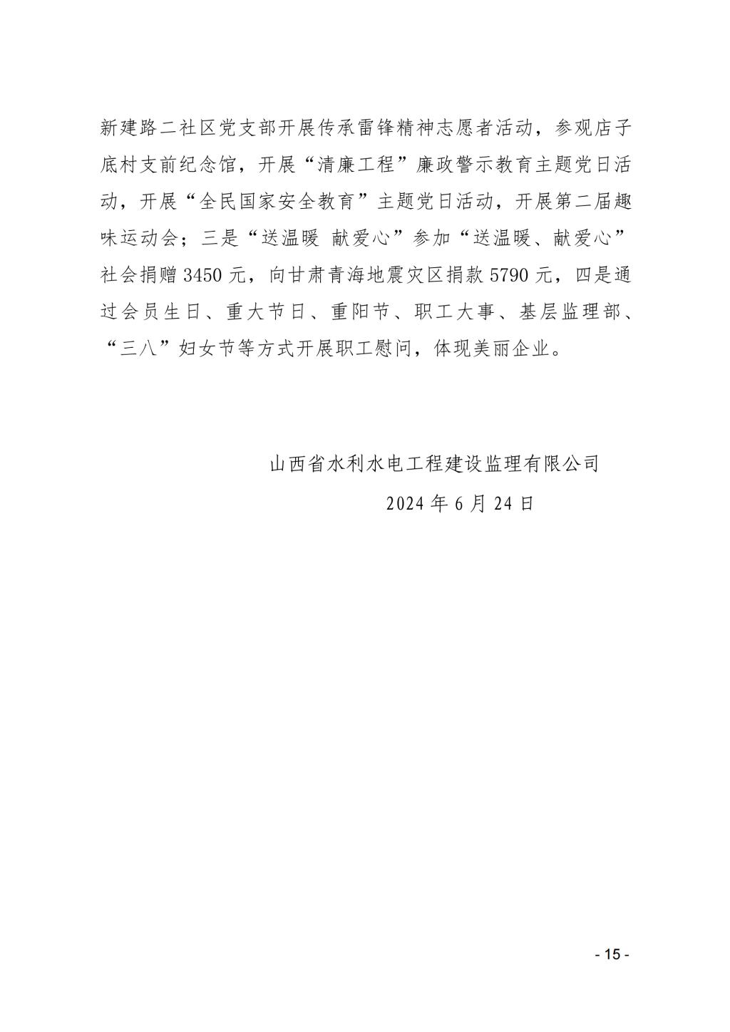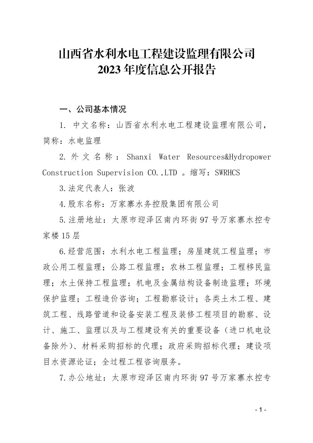山西滹沱河管理有限公司2024年中期信息公开报告