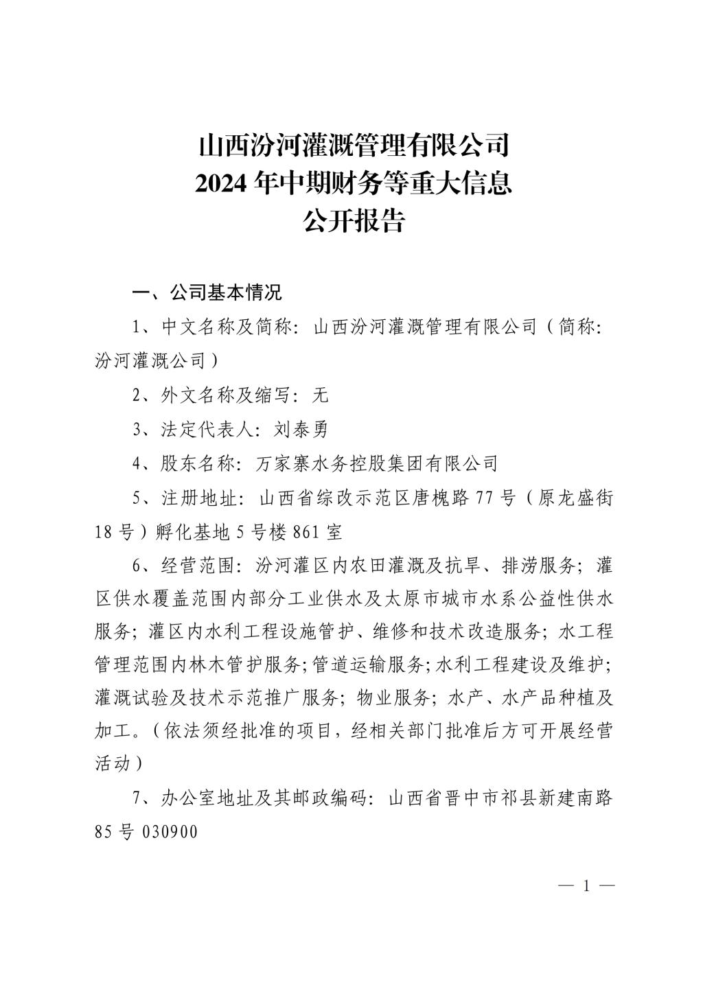 山西水务集团建设投资有限公司2024年中期信息公开...