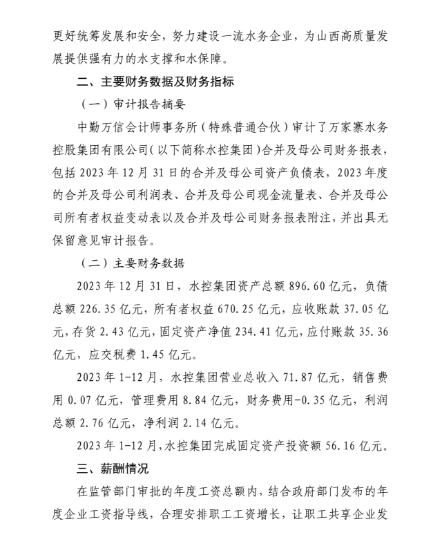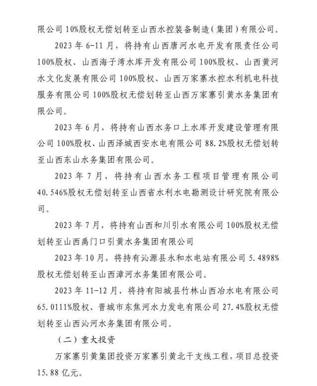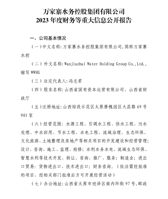 山西汾河流域管理有限公司2024年中期财务等重大信...