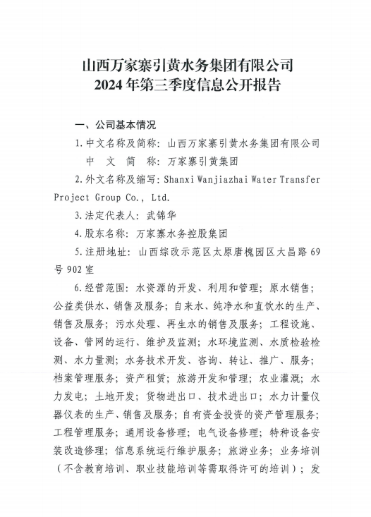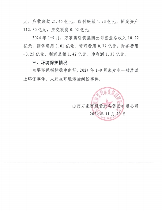 山西万家寨水控工程投资有限公司2024年第三季度信...