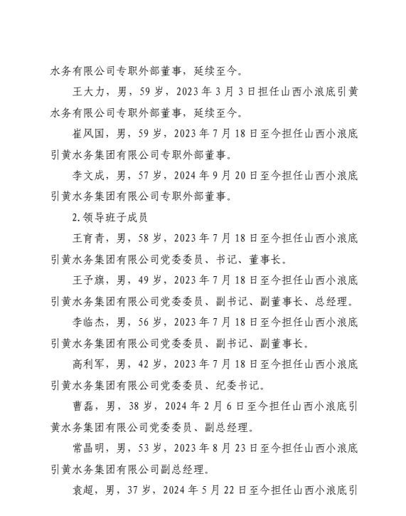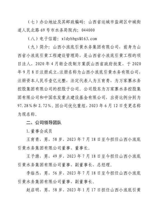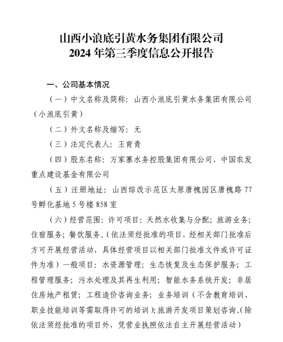 山西小浪底引黄水务集团有限公司2024年中期信息公...