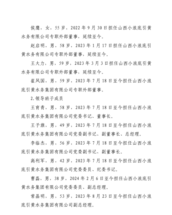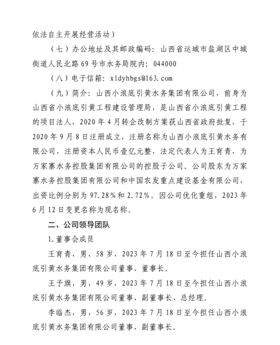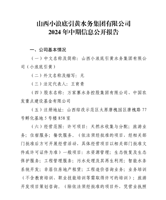山西小浪底引黄水务集团有限公司2024年第三季度信...