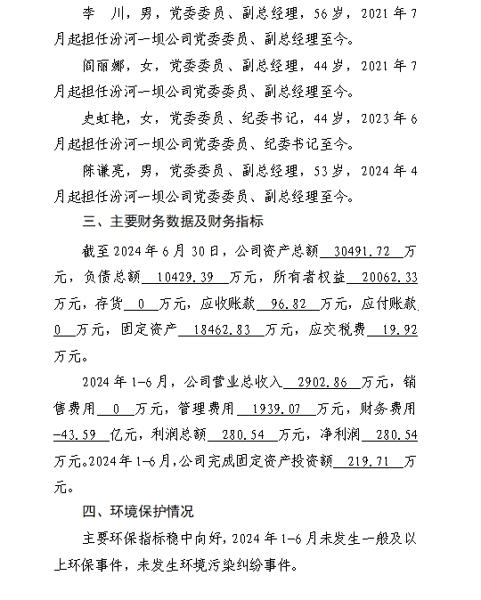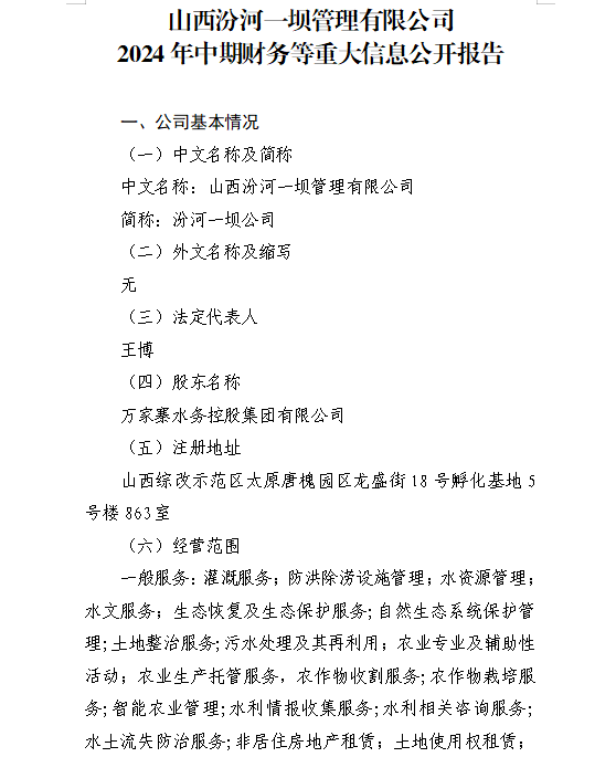 山西小浪底引黄水务集团有限公司2024年中期信息公...