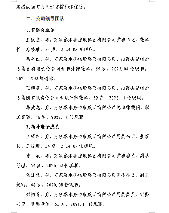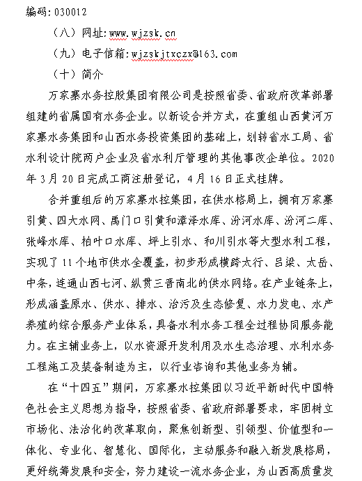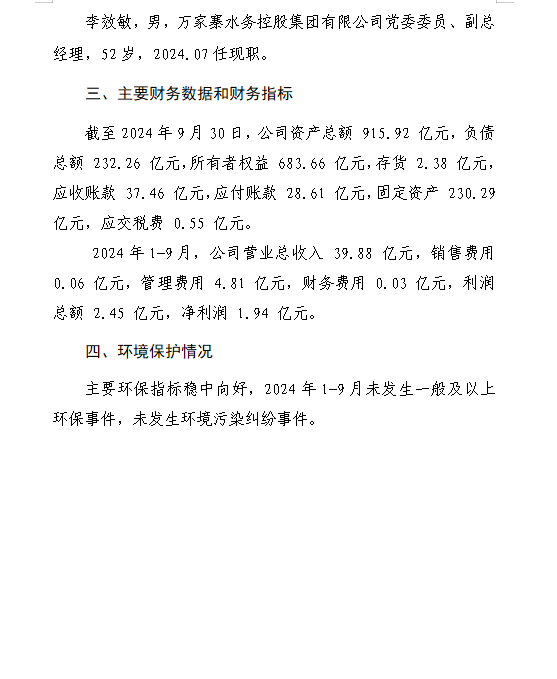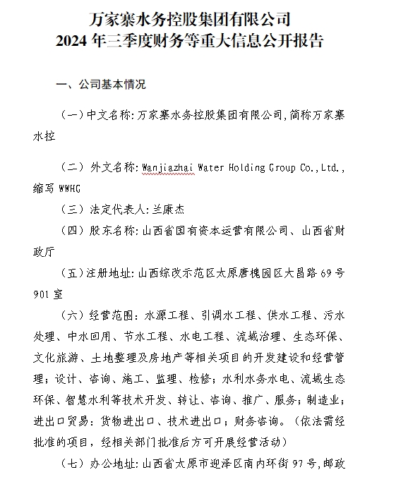 万家寨水务控股集团有限公司2024年中期财务等重大...