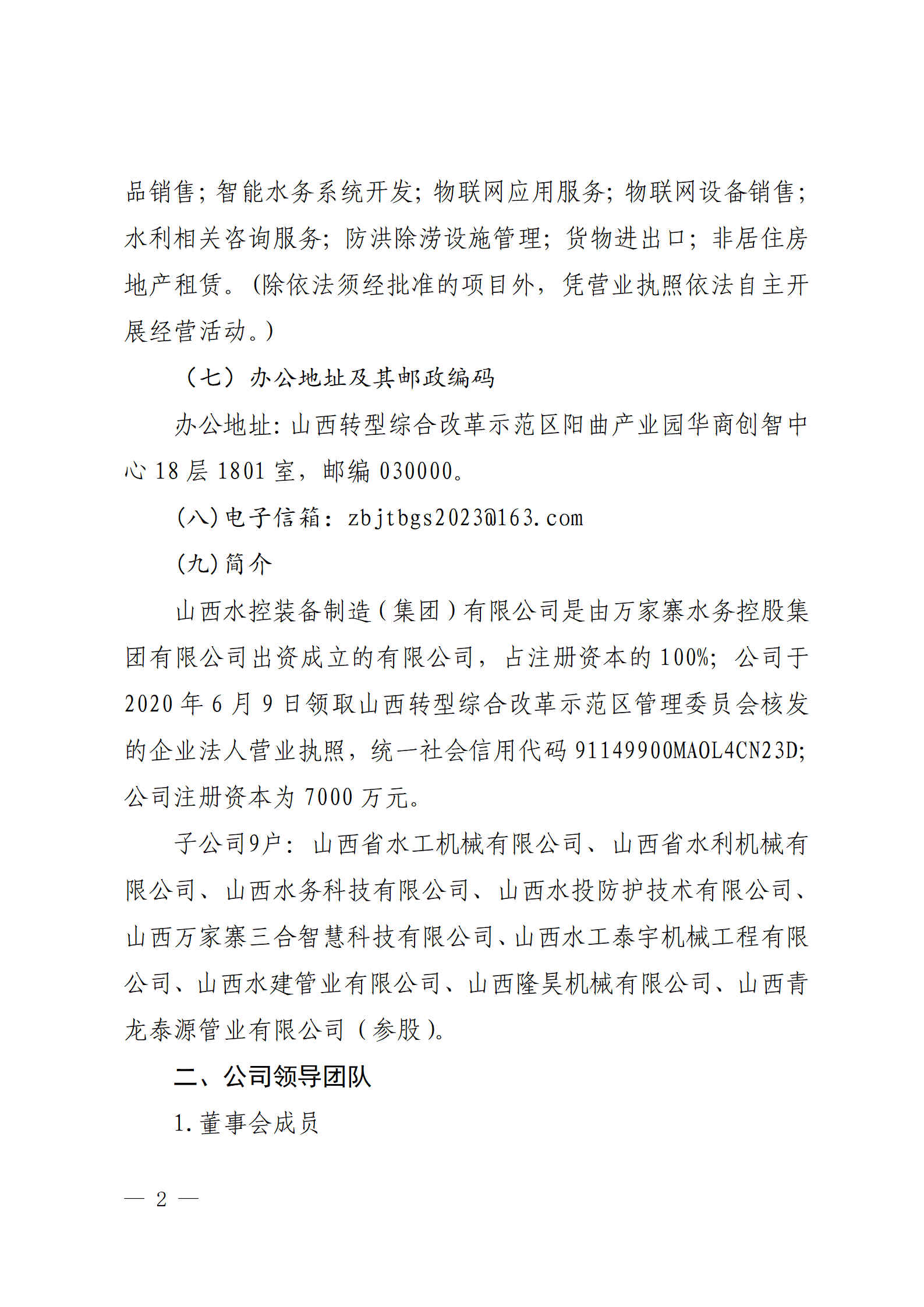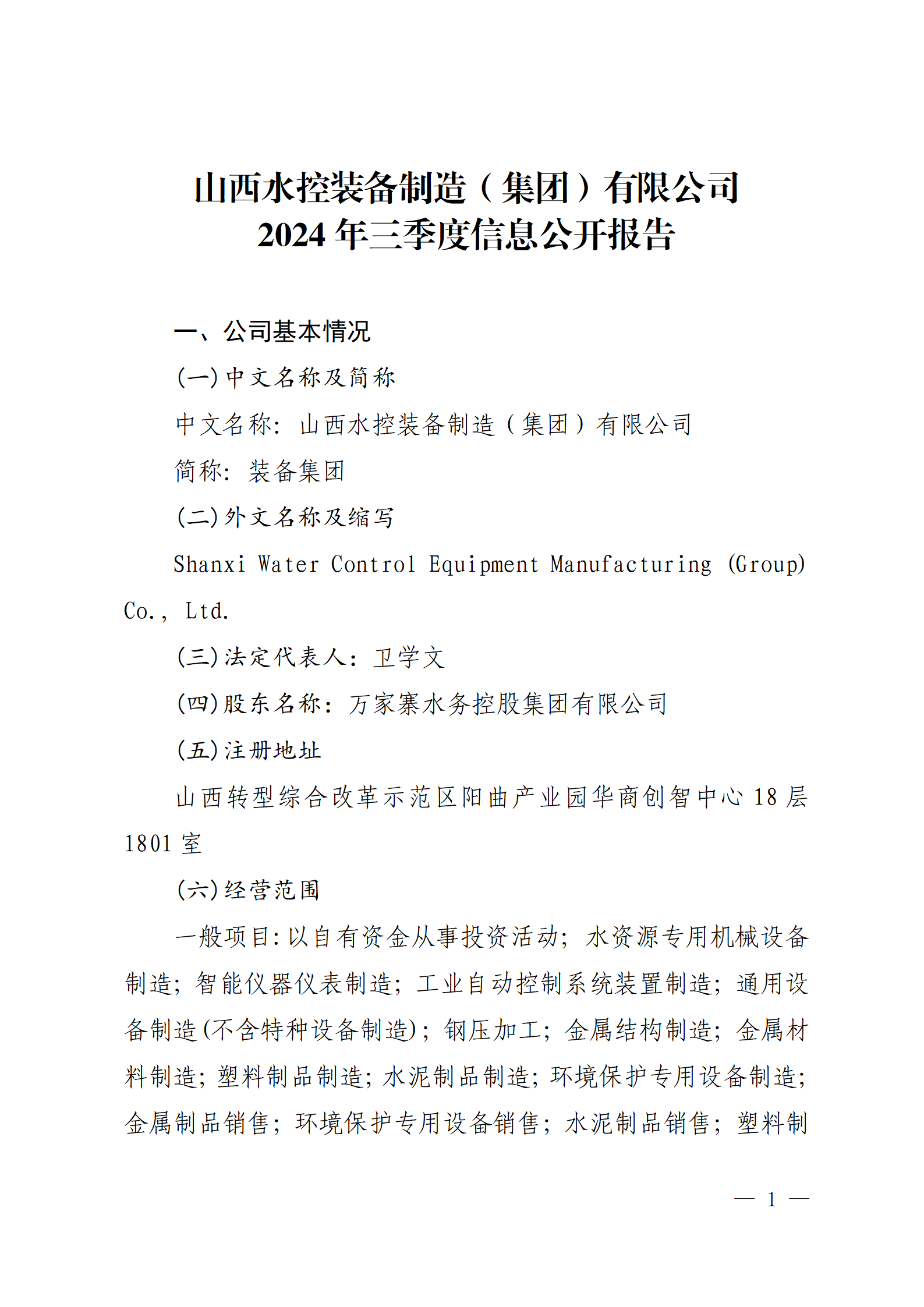 山西水控实业有限公司2024年中期信息公开报告