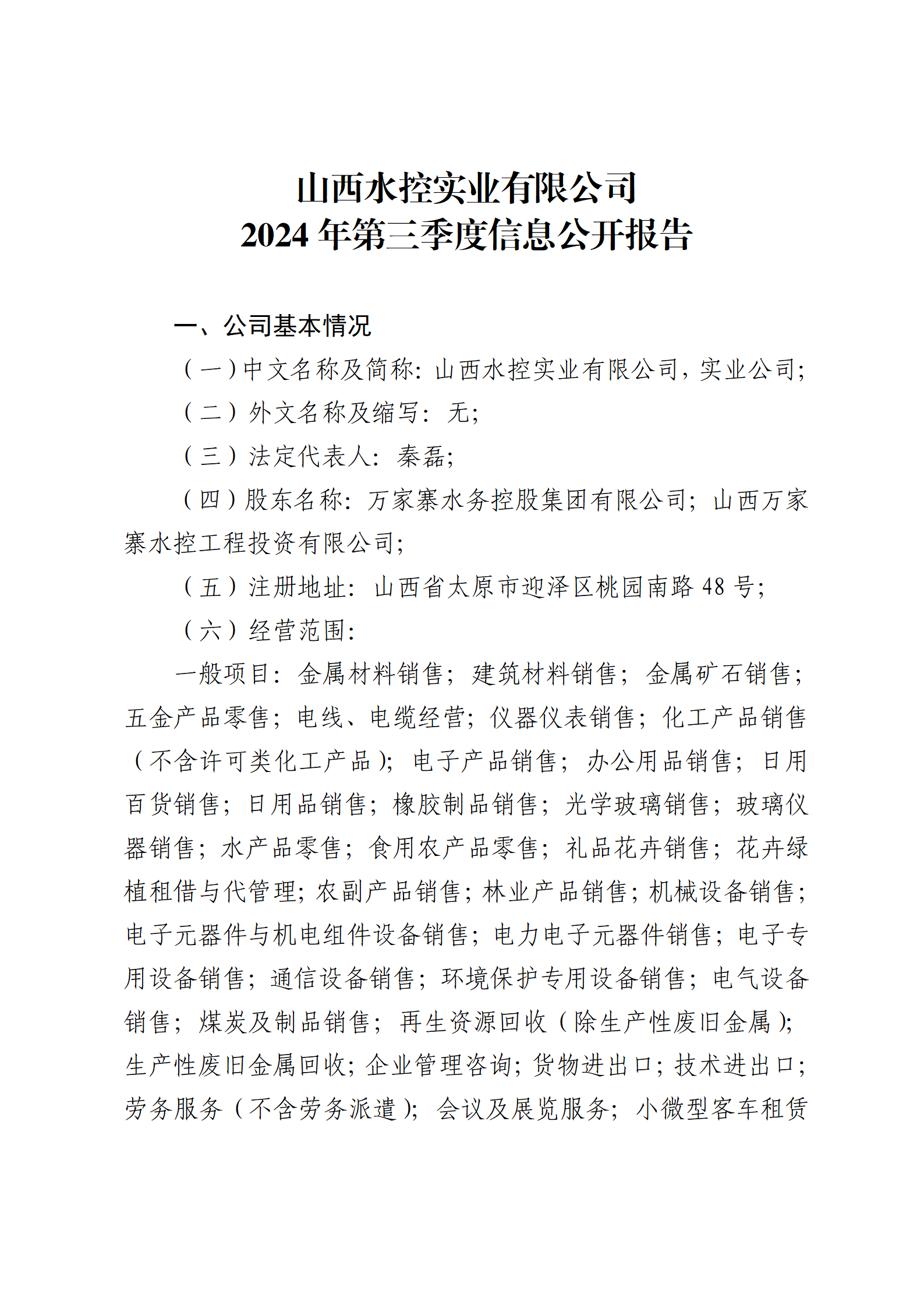 山西水务工程建设监理有限公司2024年第三季度财务...