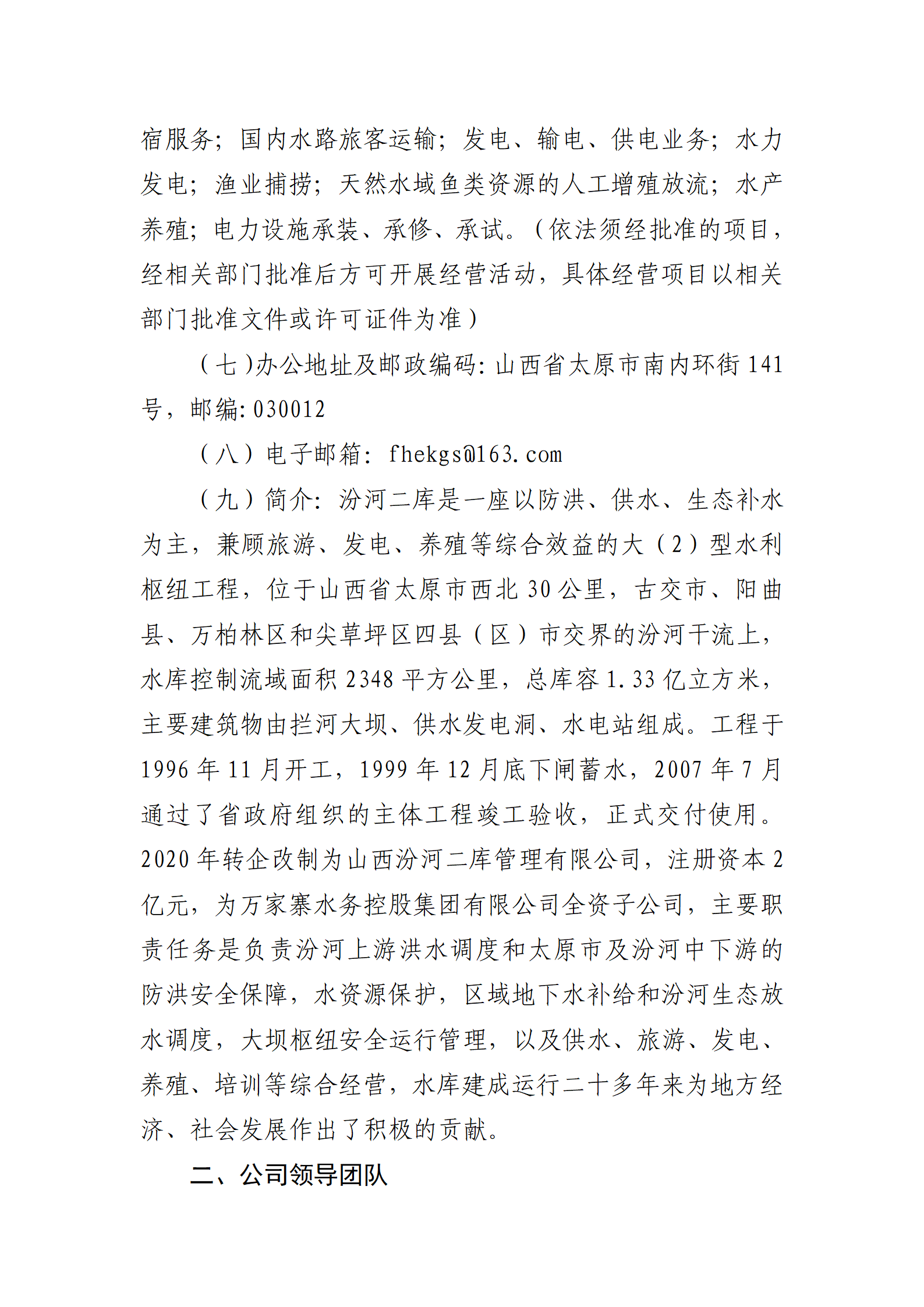 山西汾河二库管理有限公司