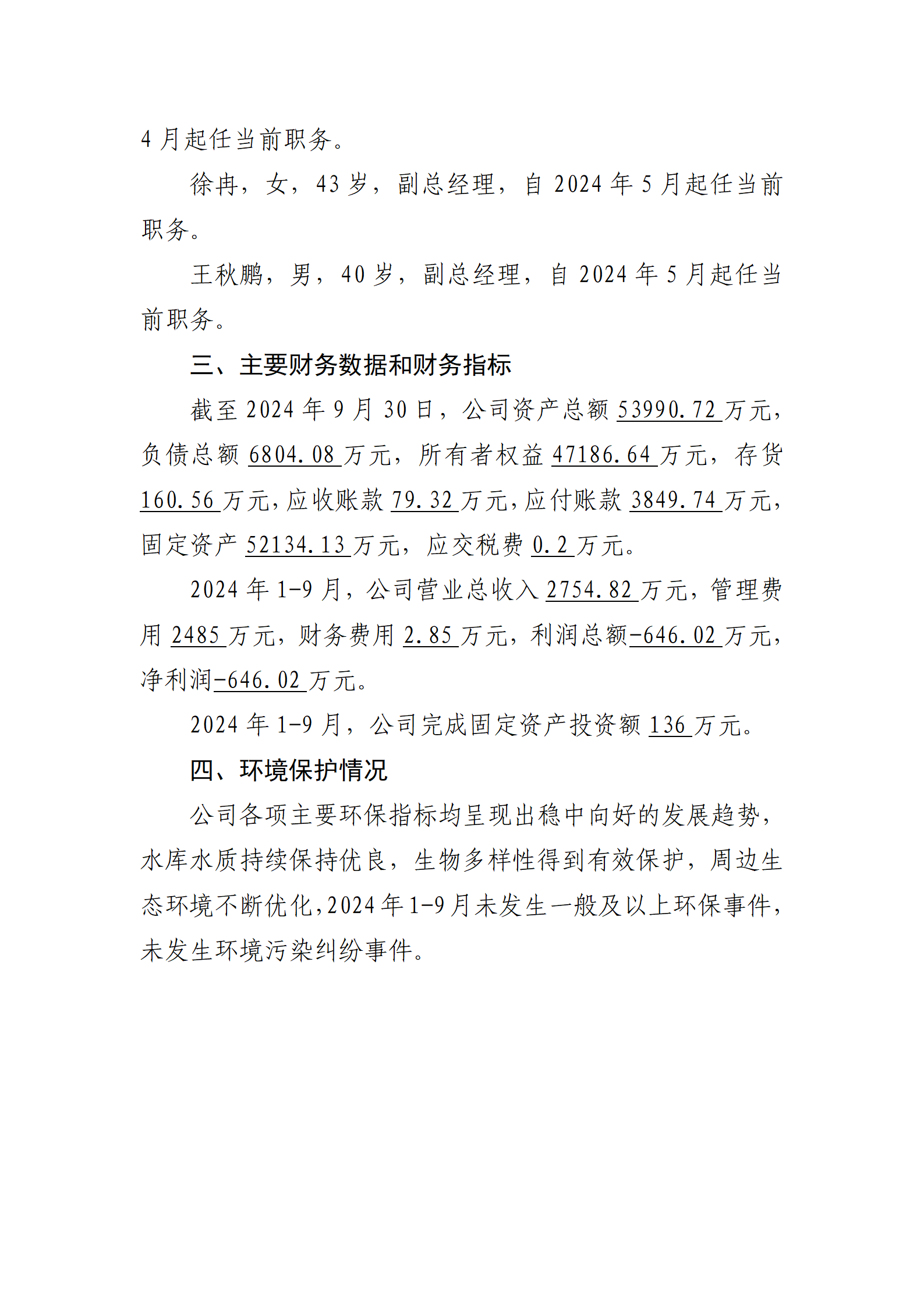 山西水务集团建设投资有限公司2024年第三季度信息...
