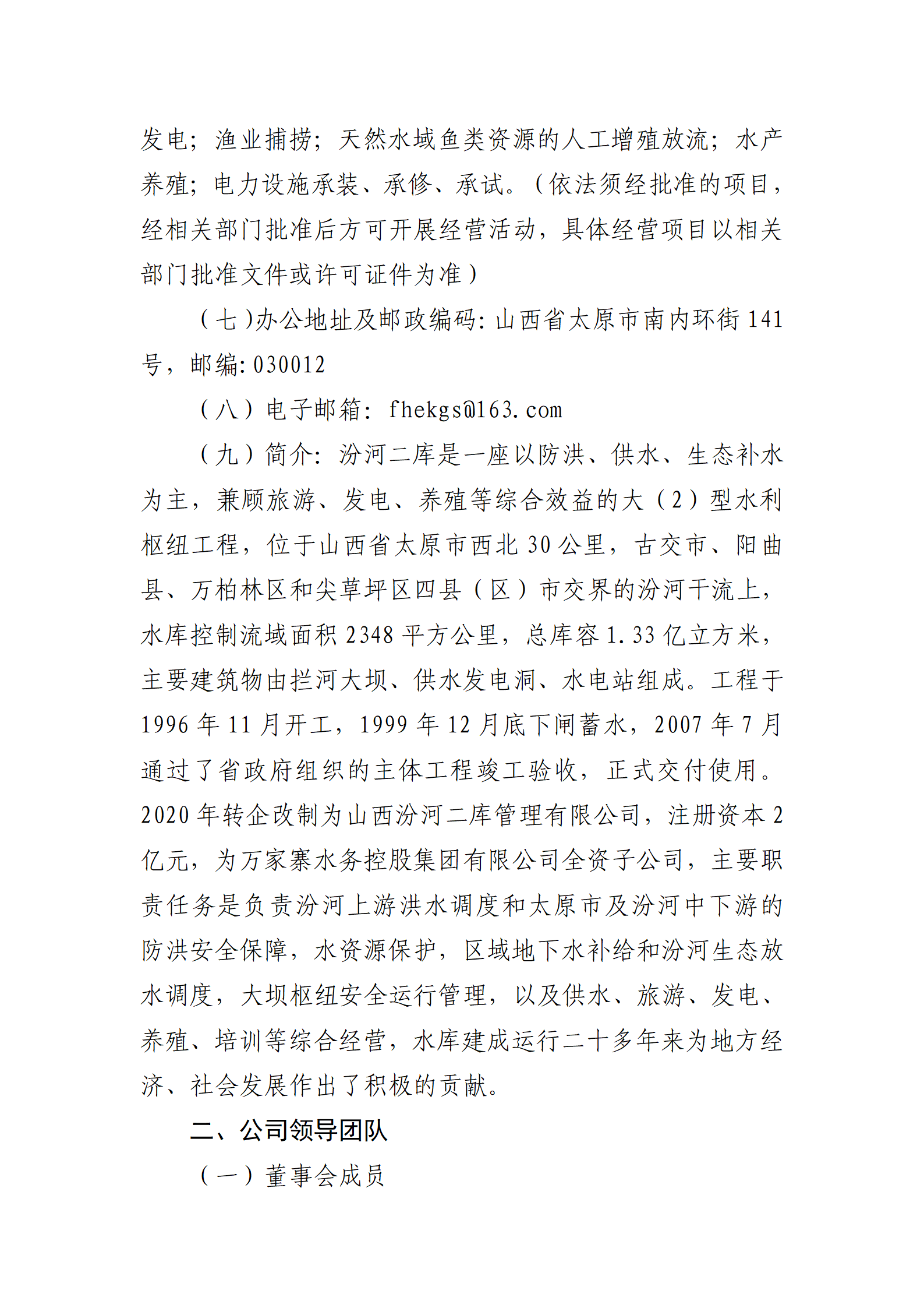 山西汾河二库管理有限公司