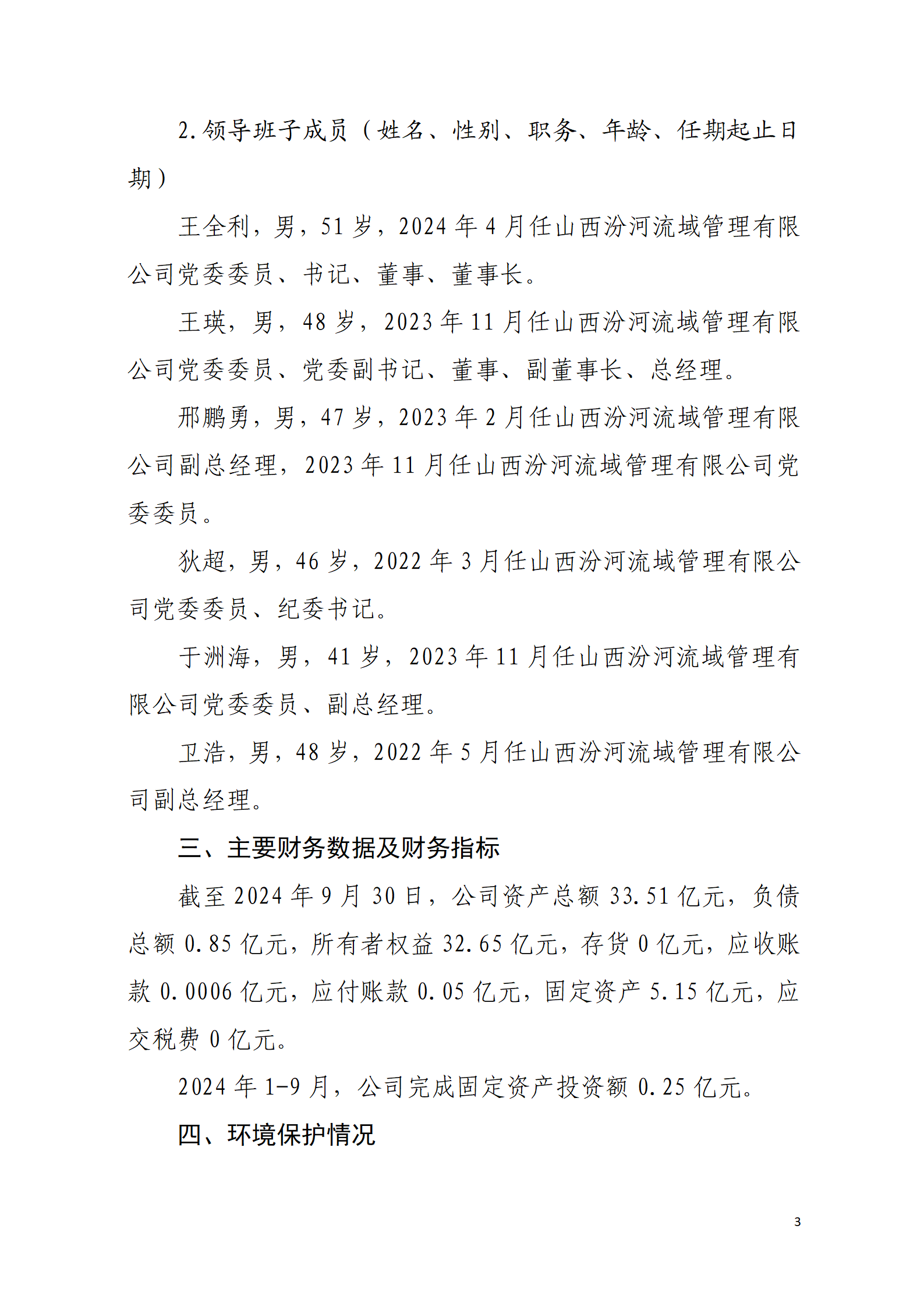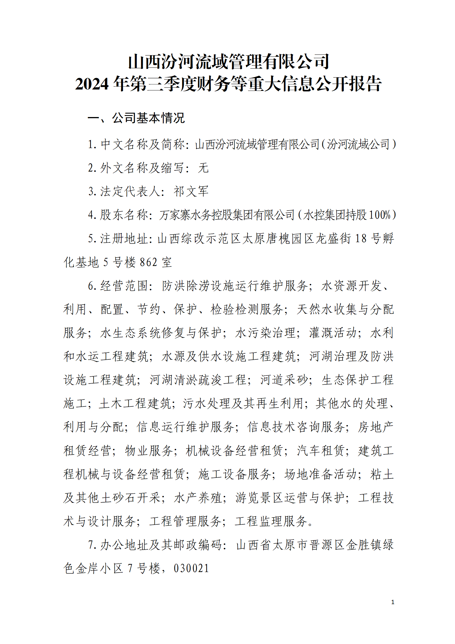 山西中部引黄水务集团有限公司2024年第三季度信息...