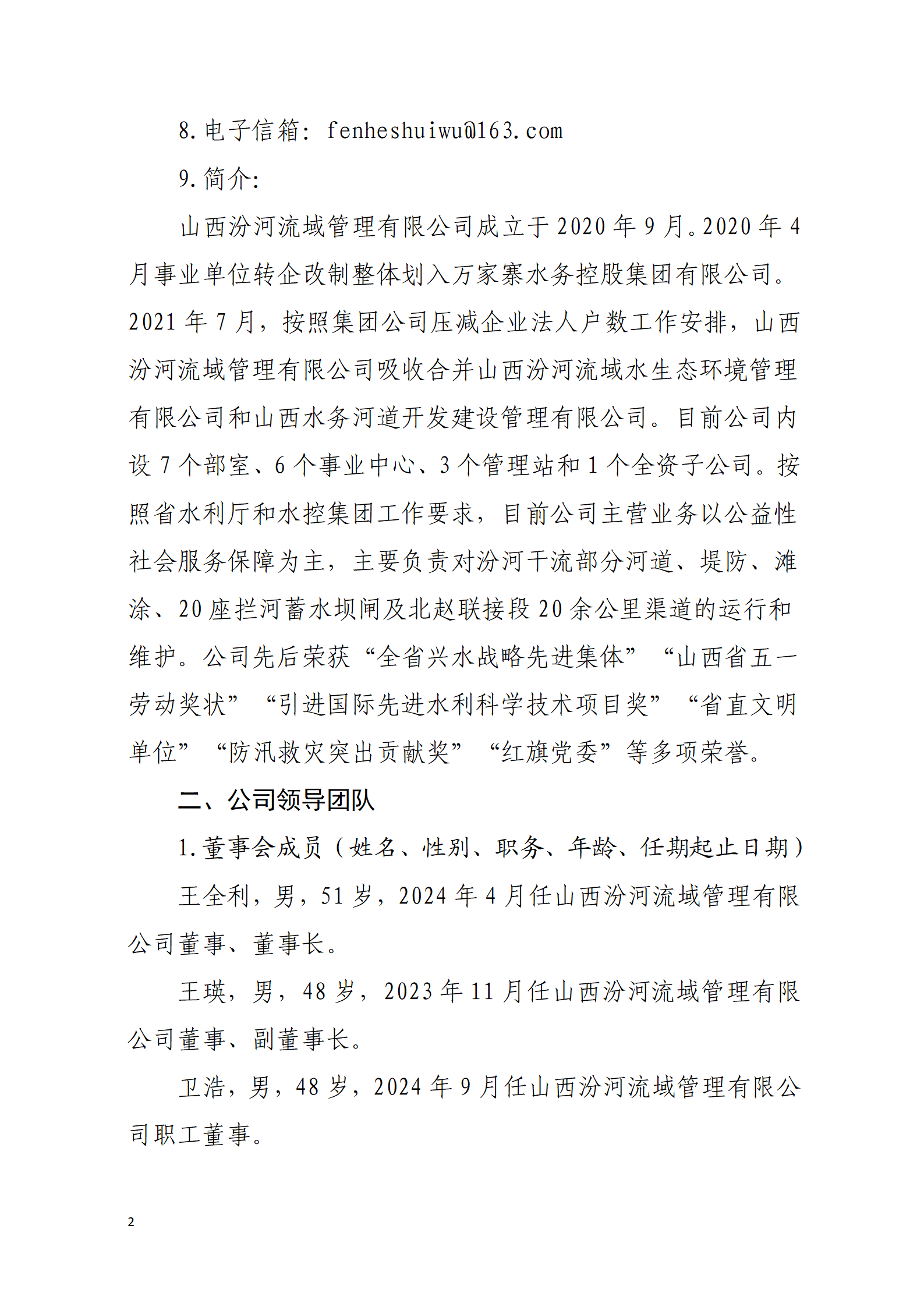 山西沁河水务集团有限公司2024年中期信息公开报告