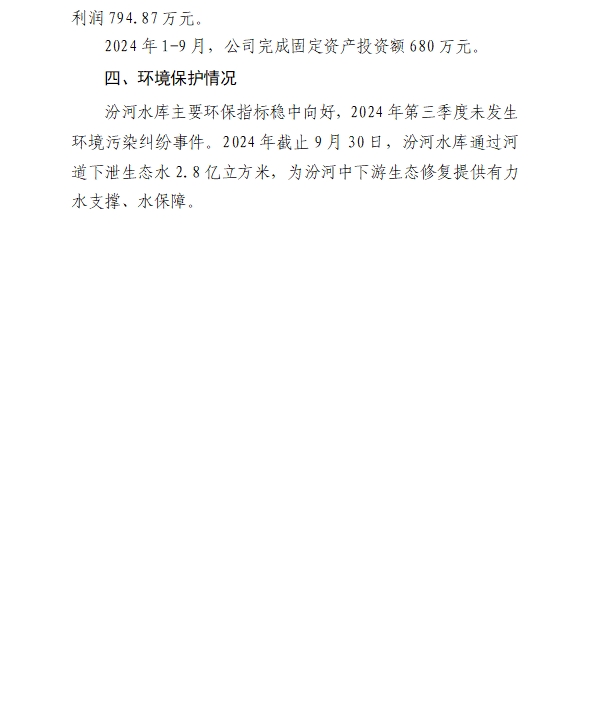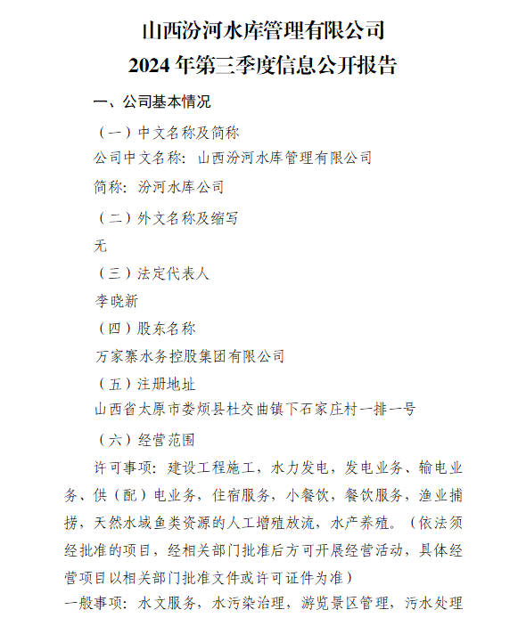 山西禹门口引黄水务集团有限公司2024年第三季度信...