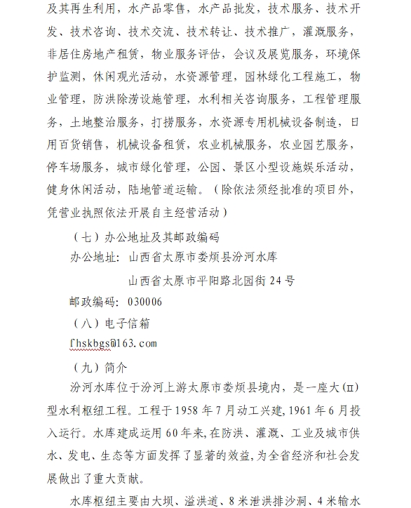 山西汾河水库管理有限公司