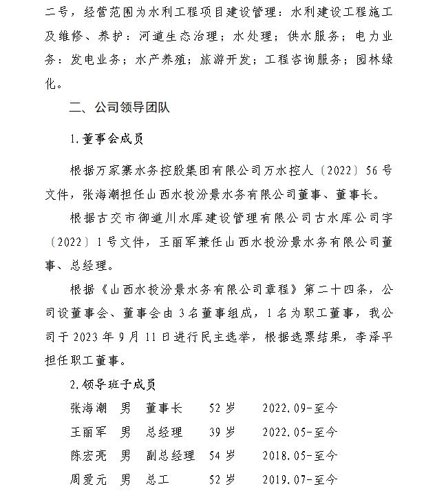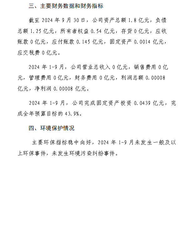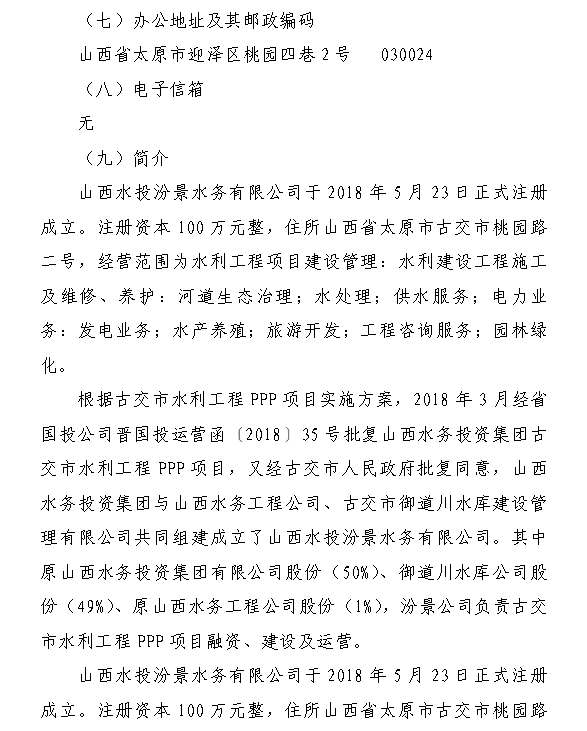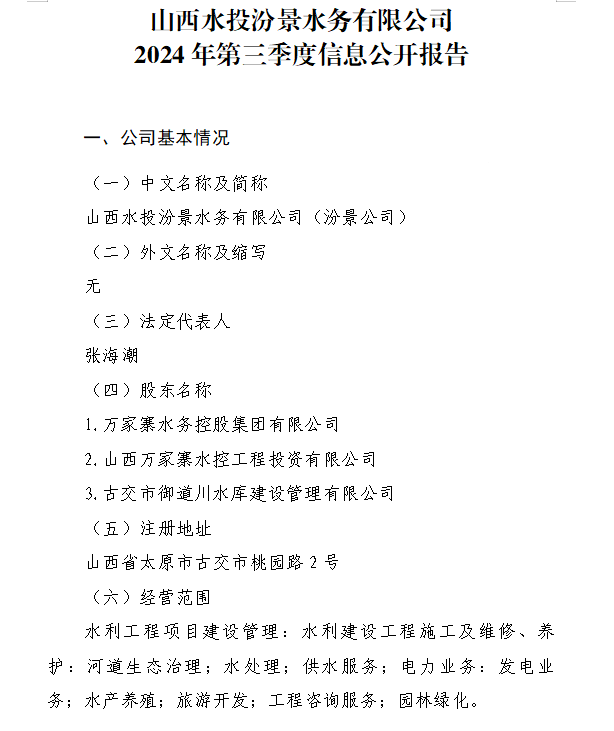 山西滹沱河管理有限公司2024年三季度信息公开报告