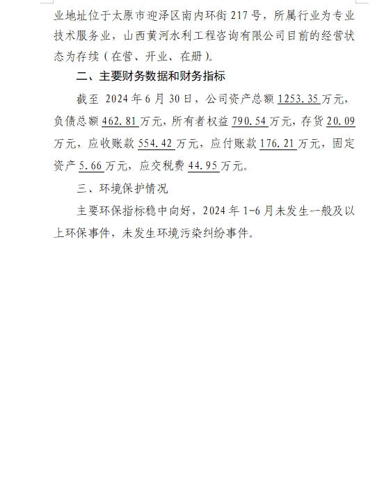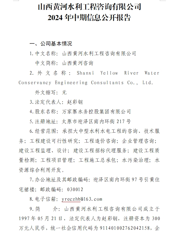 山西省水利水电工程建设监理有限公司2024年第三季...