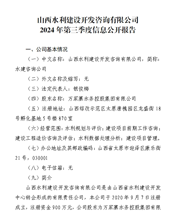 山西省水利水电工程建设监理有限公司2024年第三季...